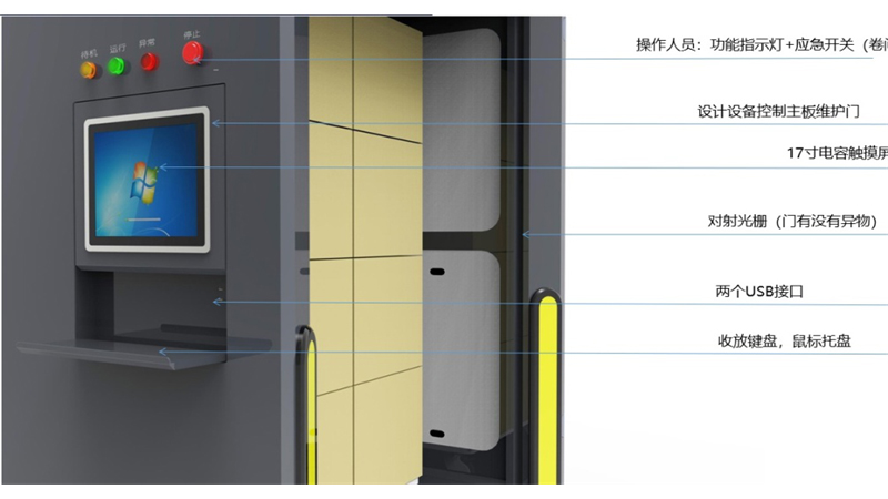 設備內(nei) 置廣角監控攝像頭,可在通道機外部工控實時查看內(nei) 部運行狀態。