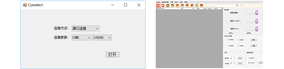 打開ReaderDemo.exe,選擇連接讀寫(xie) 器-設備連接。
